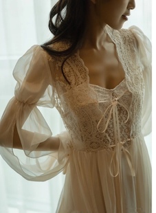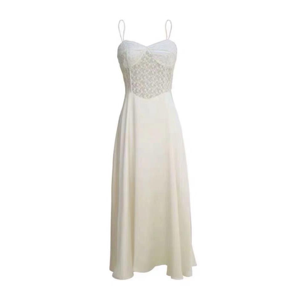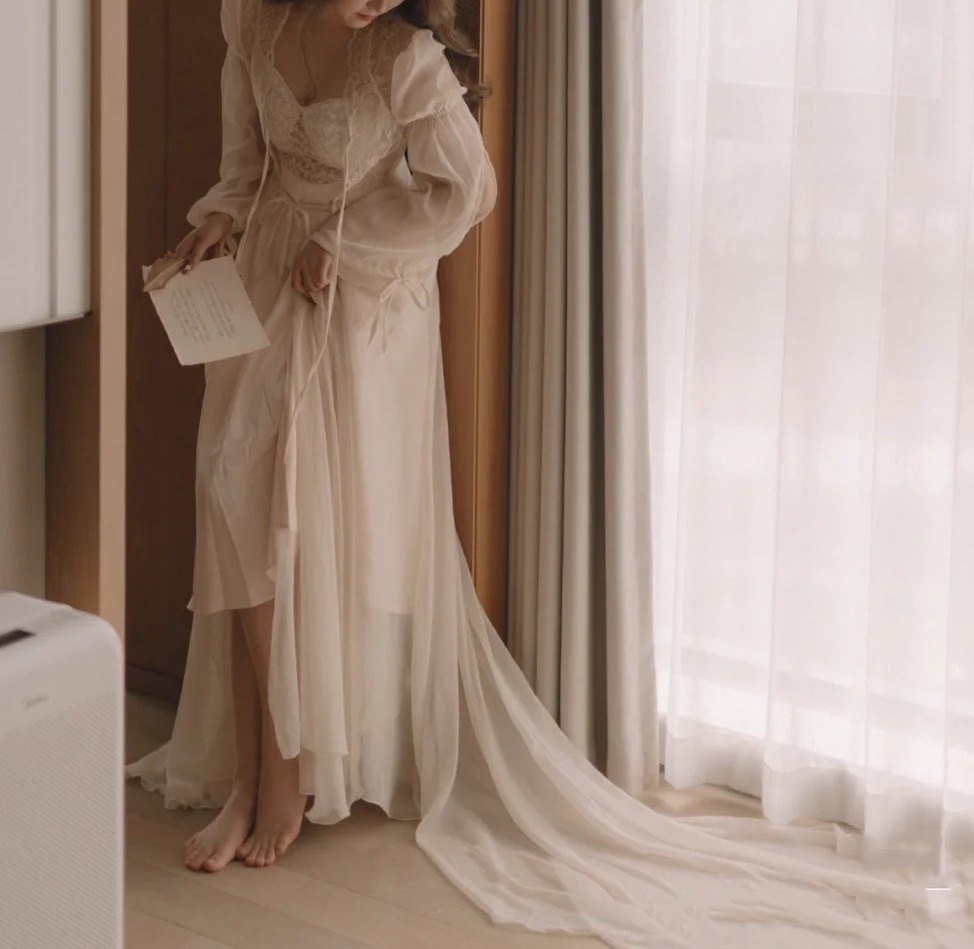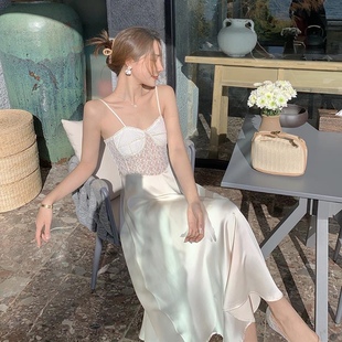 Wedding新娘结婚婚睡美人晨袍内搭蕾丝吊带拼接绸缎缎面长裙