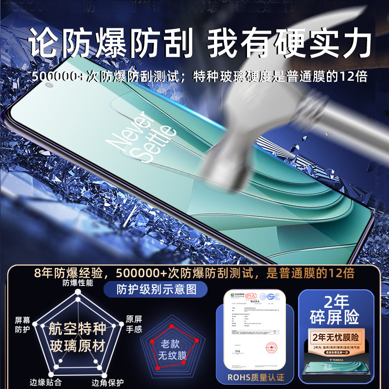 加防指纹高清护眼抗蓝光保护贴膜 oneplus1 AJF适用一加ace2v钢化膜ace2v手机膜全屏覆盖新款 防摔爆适用oppo