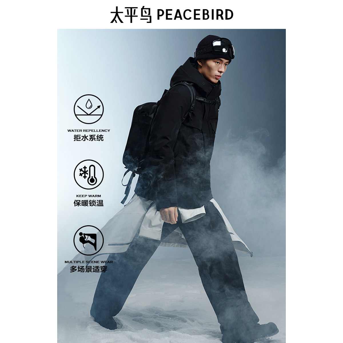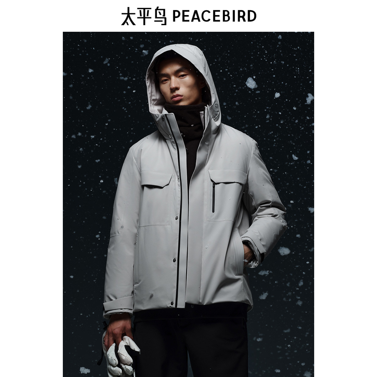 黑色工装 新款 防寒服连帽外套 户外羽绒服男2025年秋季 太平鸟男装