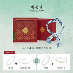 周大生新中式 和田玉手镯女白月光玉镯子白玉传家镯生日礼物送女友