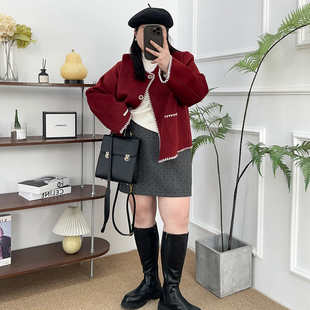 大码 高腰羊毛呢料百褶裙女防走光a字短裙加厚显瘦学院风半身裙
