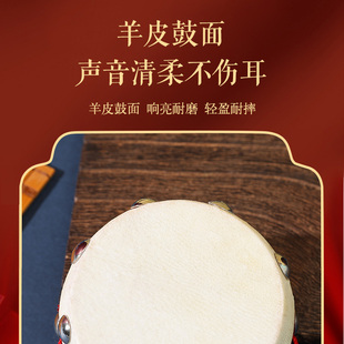 中国风传统拨浪鼓双面羊皮鼓新生儿玩具0 1岁宝宝早教益智手摇铃