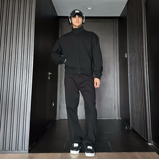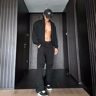 裤 小众设计感弯刀裤 高街直筒休闲工装 美式 子 男秋冬加绒黑色牛仔裤