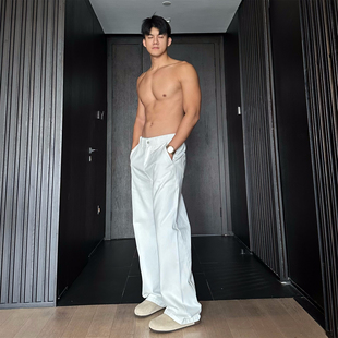 高街潮牌痞帅宽松直筒加绒加厚男生阔腿裤 牛仔裤 美式 秋冬季 子 男款