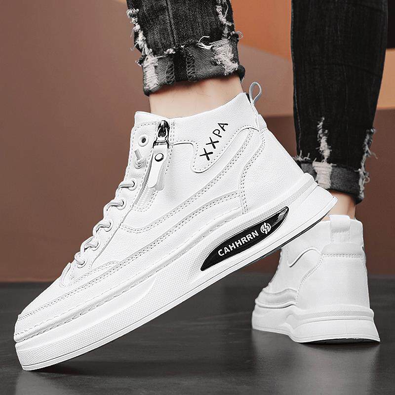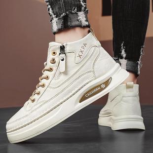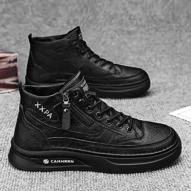 新款 冬季 皮面鞋 子学生厚底男鞋 征服鸿星尔克板鞋 高帮休闲鞋 运动鞋