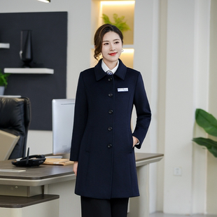 职业大衣女冬中长款 毛呢子外套加厚 售楼部空姐酒店前台工作服冬装