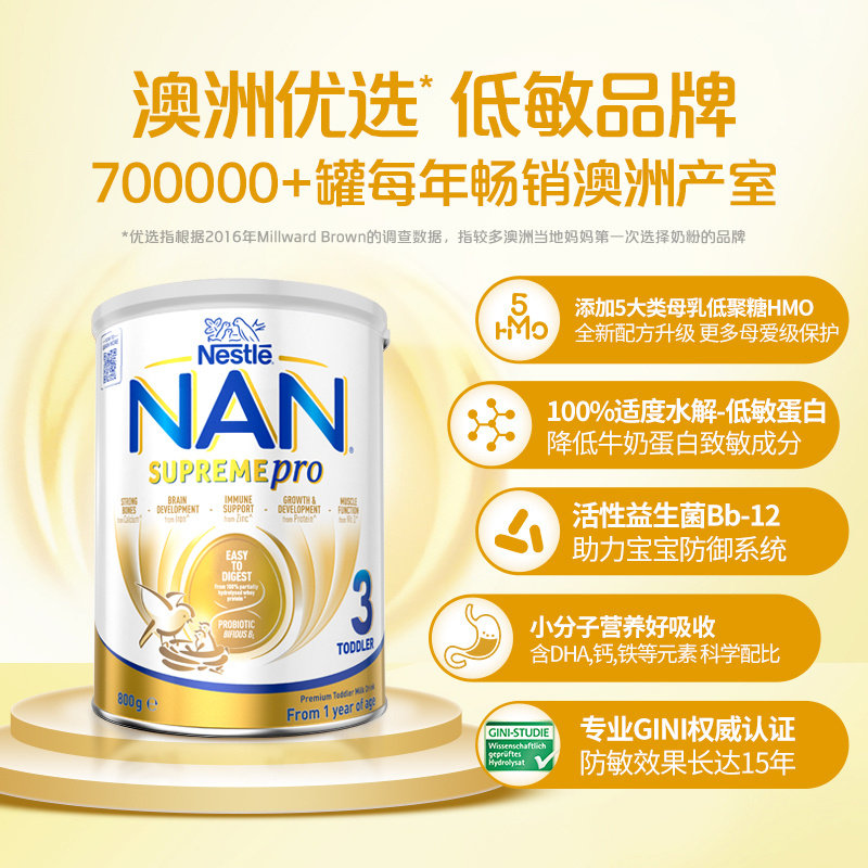 雀巢澳版 24个月婴幼儿奶粉800g罐 超启超级能恩适度水解蛋白3段12