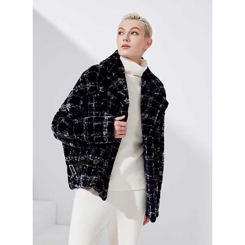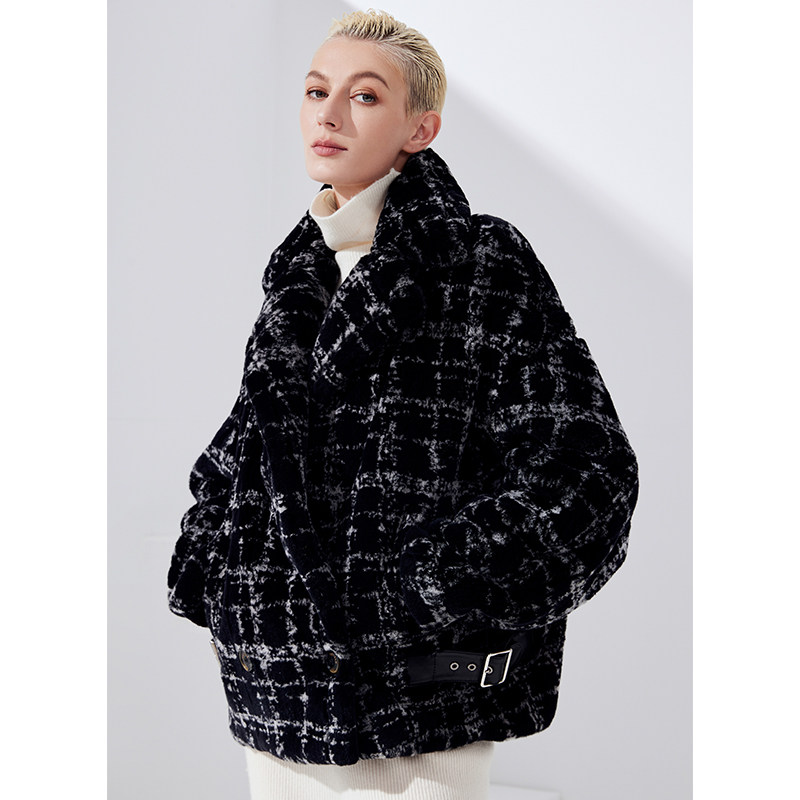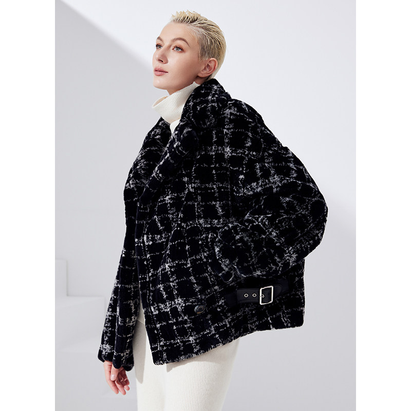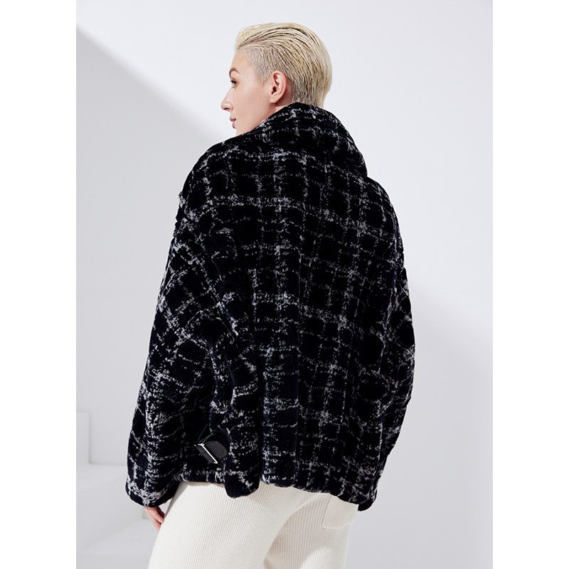 进口貂皮大衣女貂绒格子水貂皮草外套新款 雪宝世家原创 短泰迪款