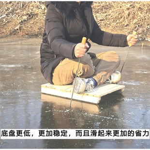 户外老式 纯实木滑冰车成人冰上爬犁滑冰神器雪橇单人溜冰车便携式