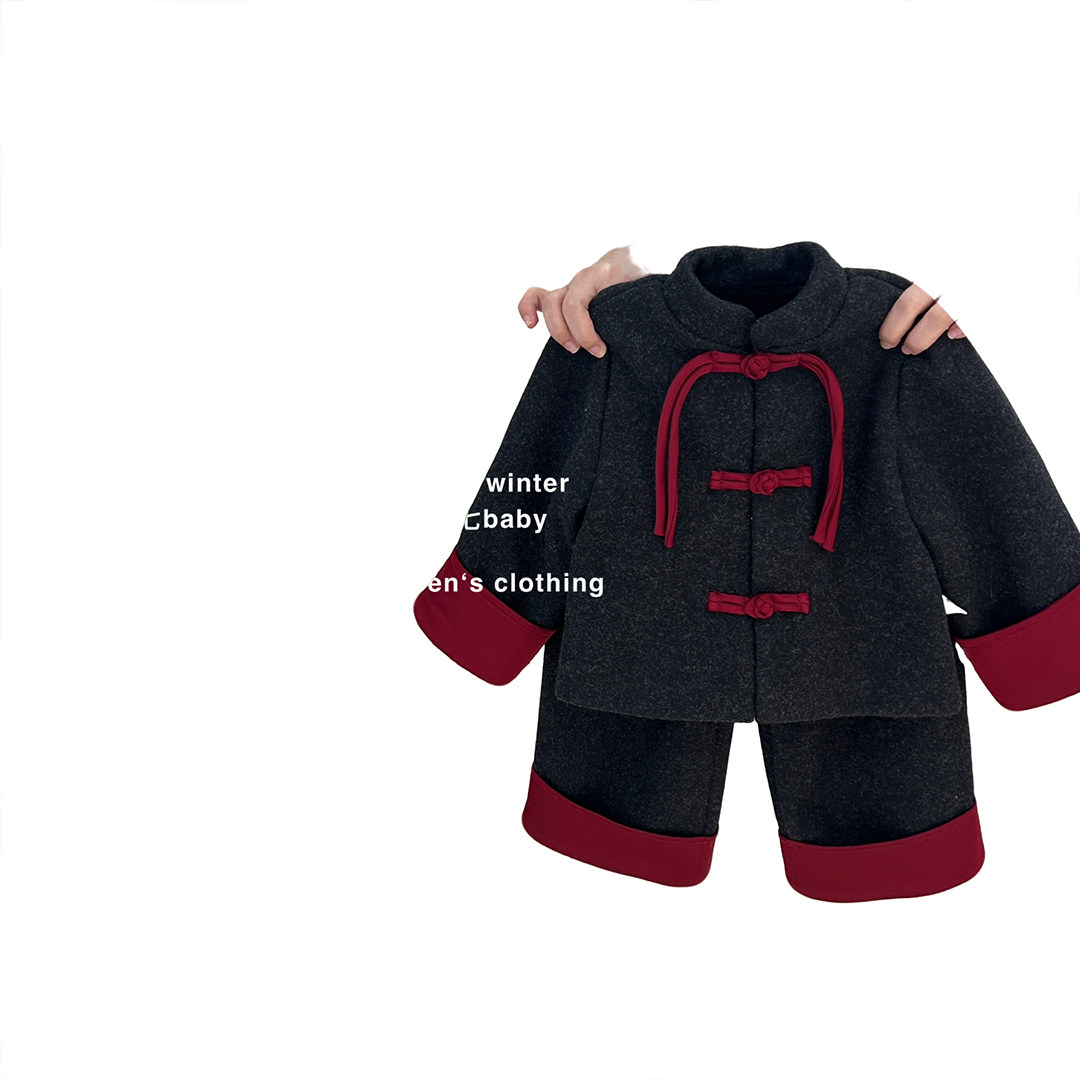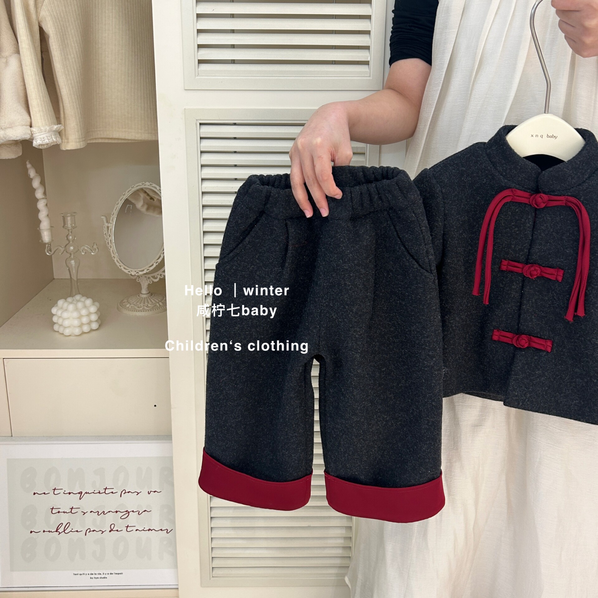 拜年服中小童百搭休闲裤 男女童新中式 冬季 2025新款 两件套 外套套装