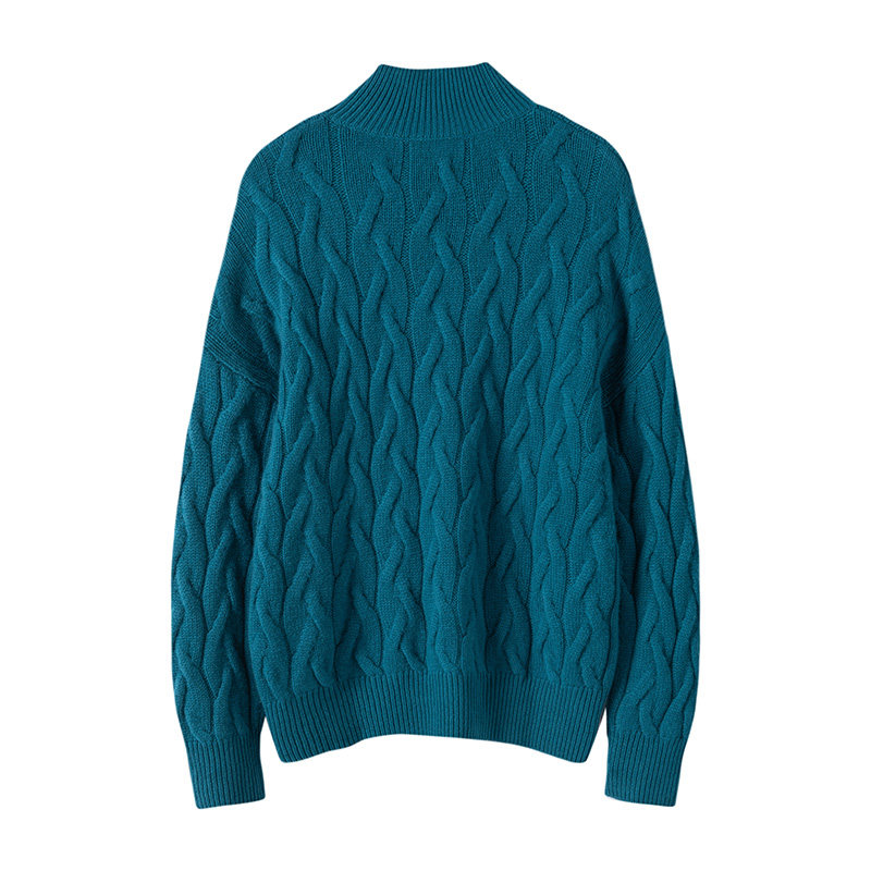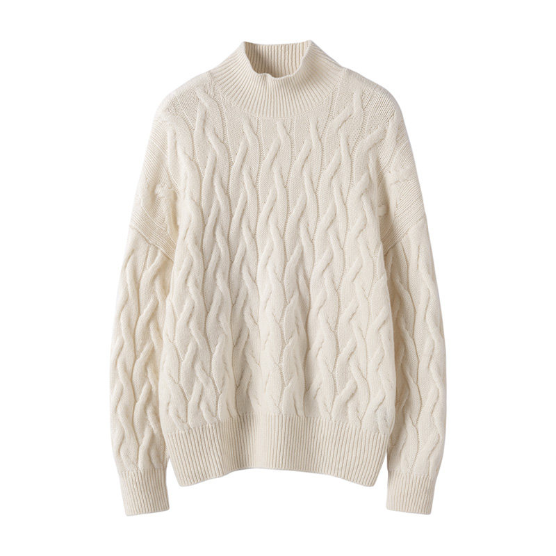 针织打底衫 品牌高级感羊毛衫 女半高领宽松毛衣秋冬加厚羊绒长袖