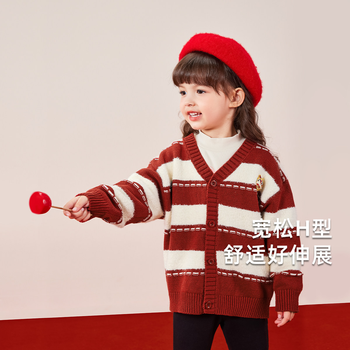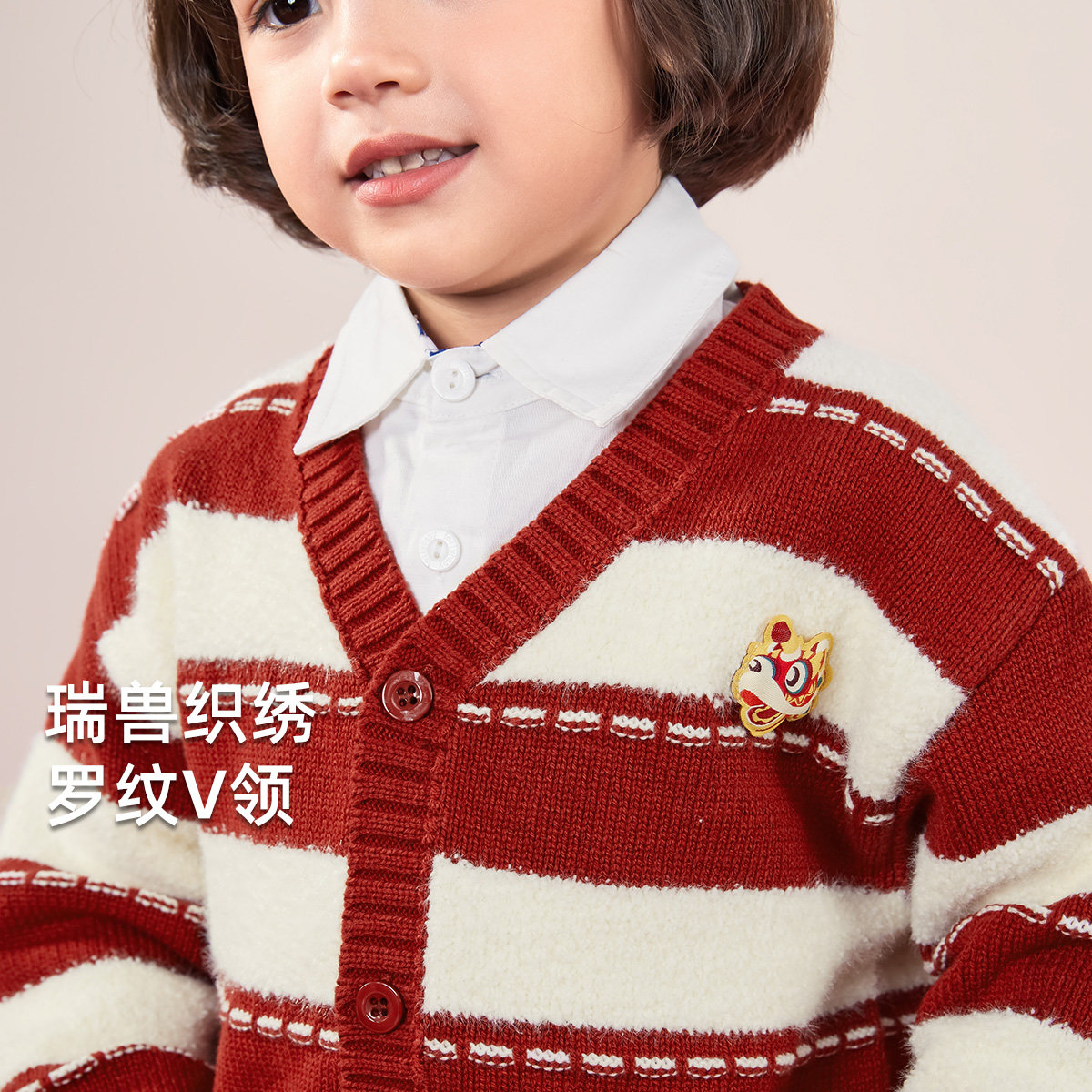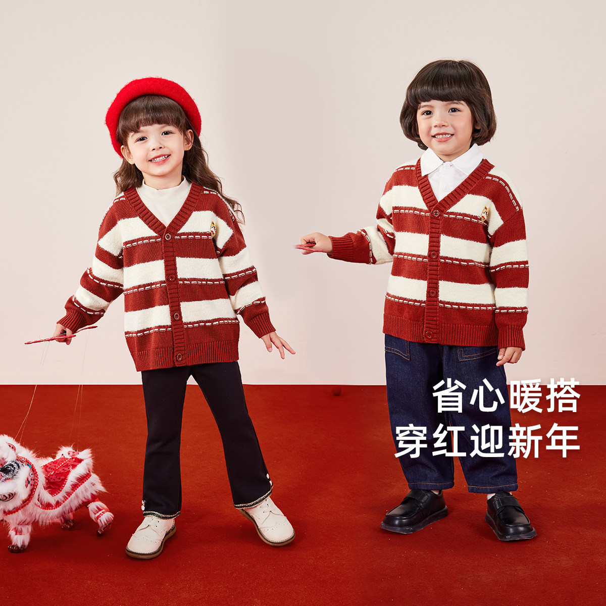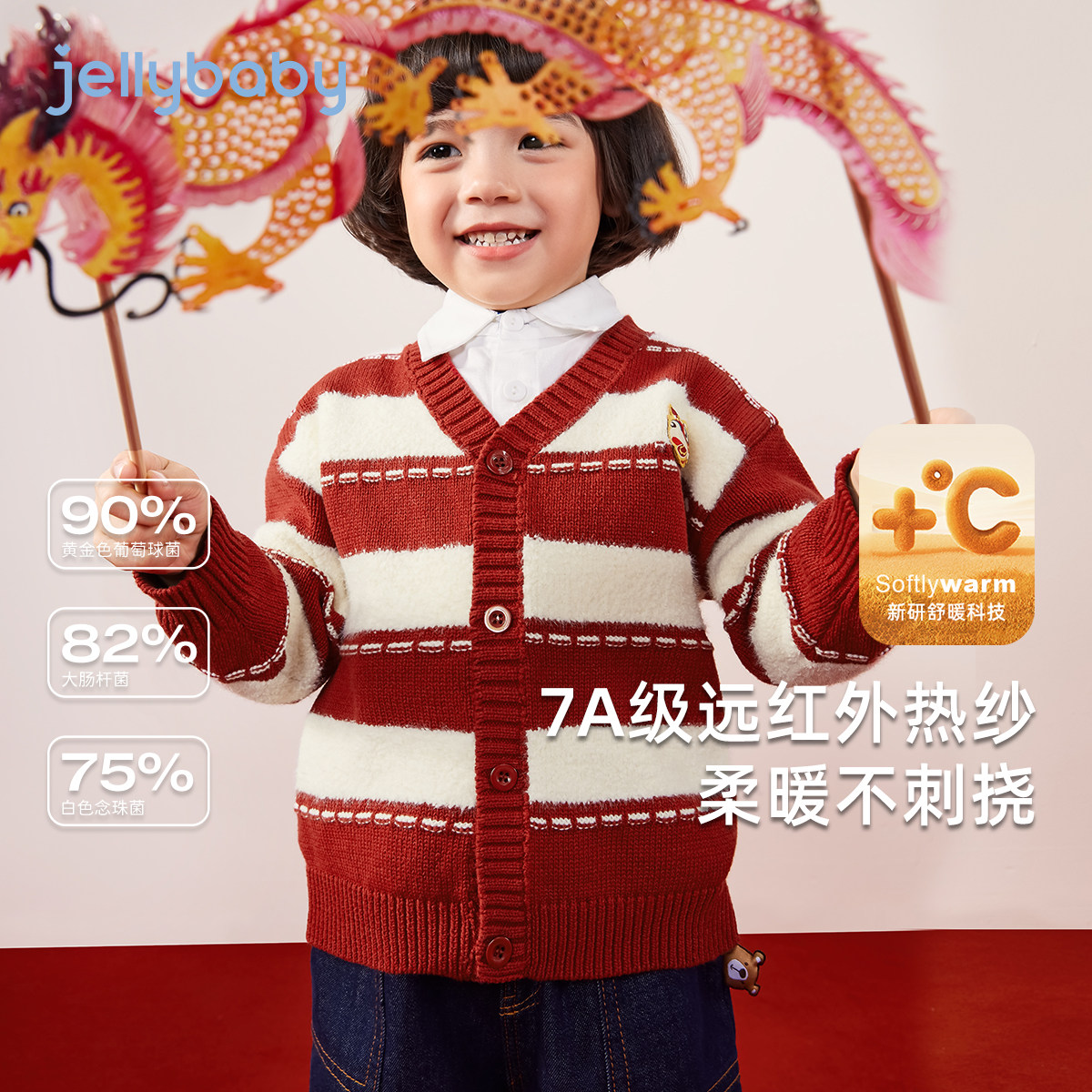 宝宝针织开衫 儿童红色毛衣外套女童衣服红男童国风秋装 抑菌锁温