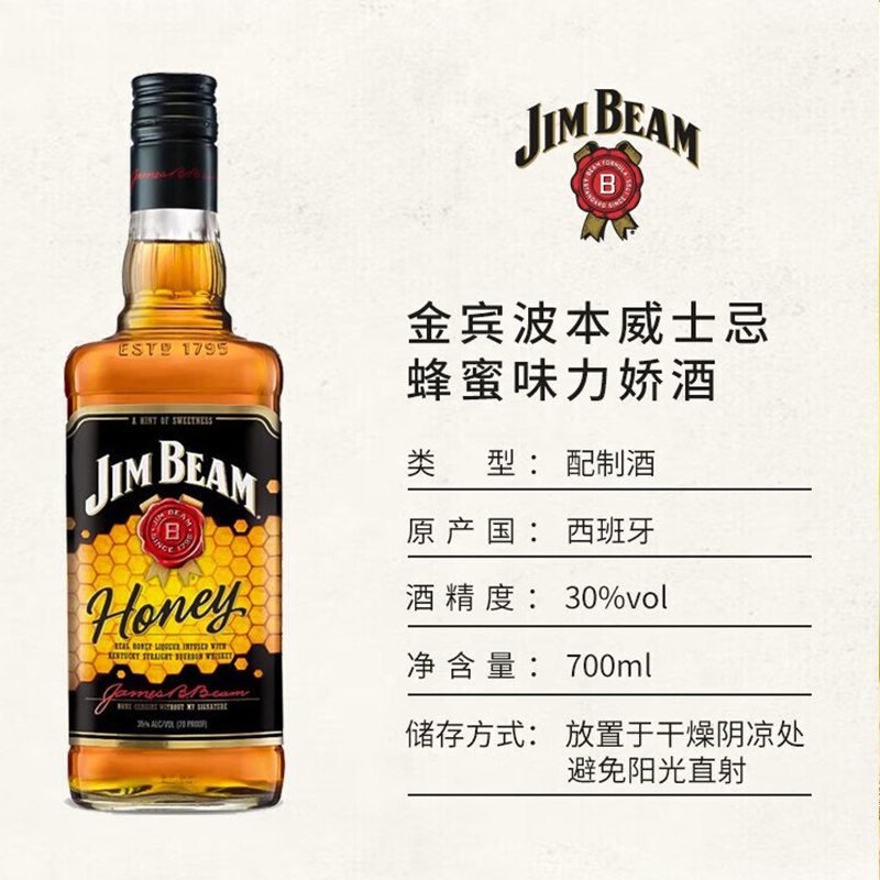 金宾波本威士忌蜂蜜味洋酒力娇酒700ml进口预调酒配制酒