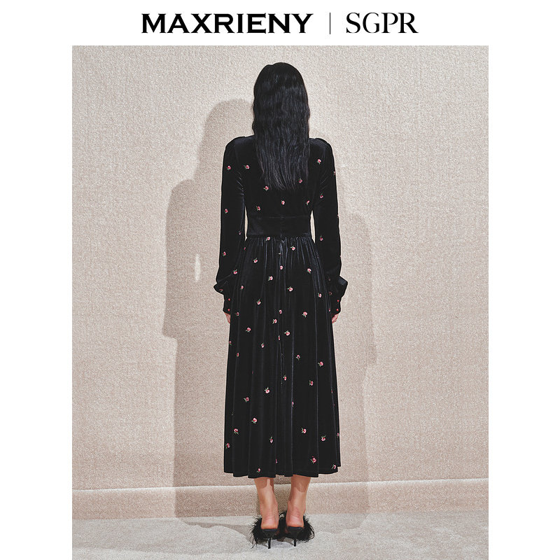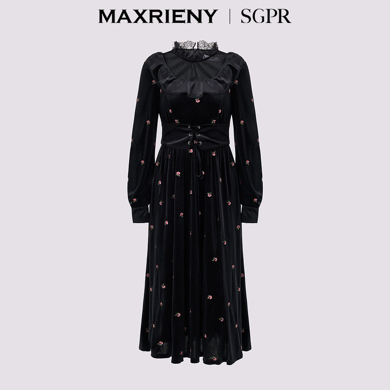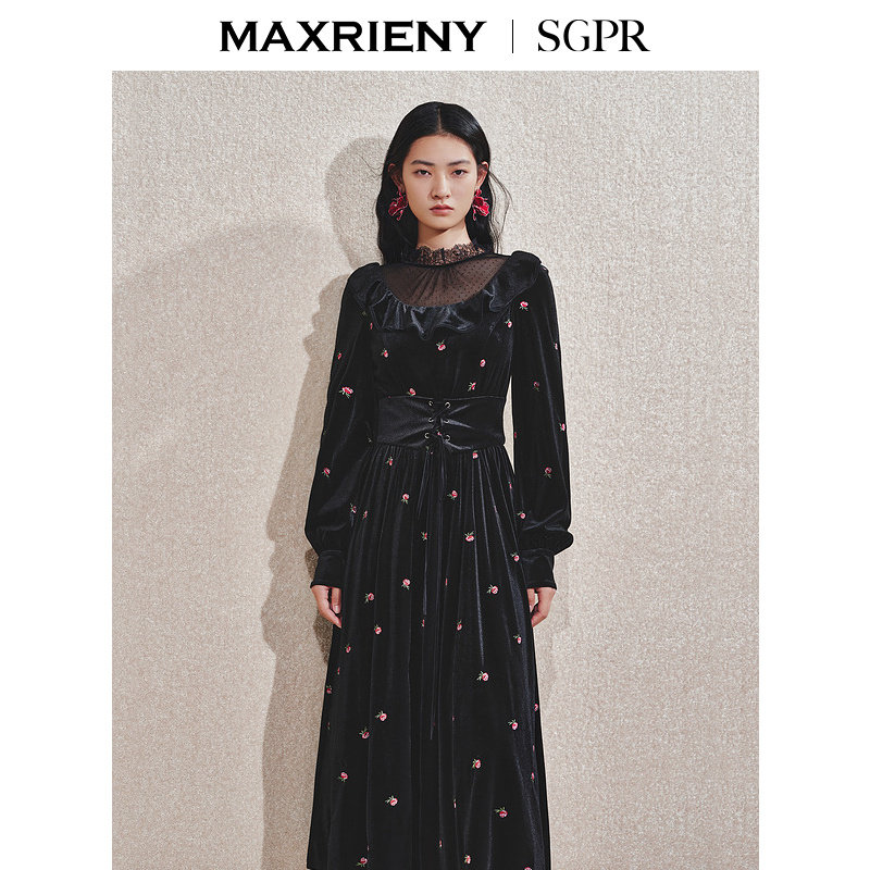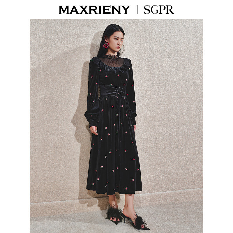 MAXRIENY法式 甜美连衣裙刺绣收腰精致赫本风长裙高级气质感