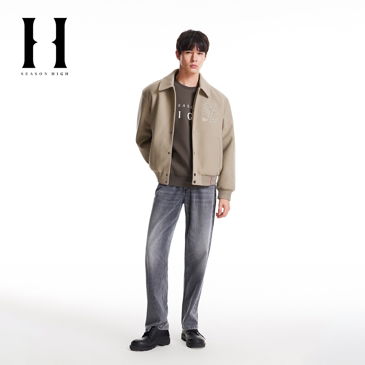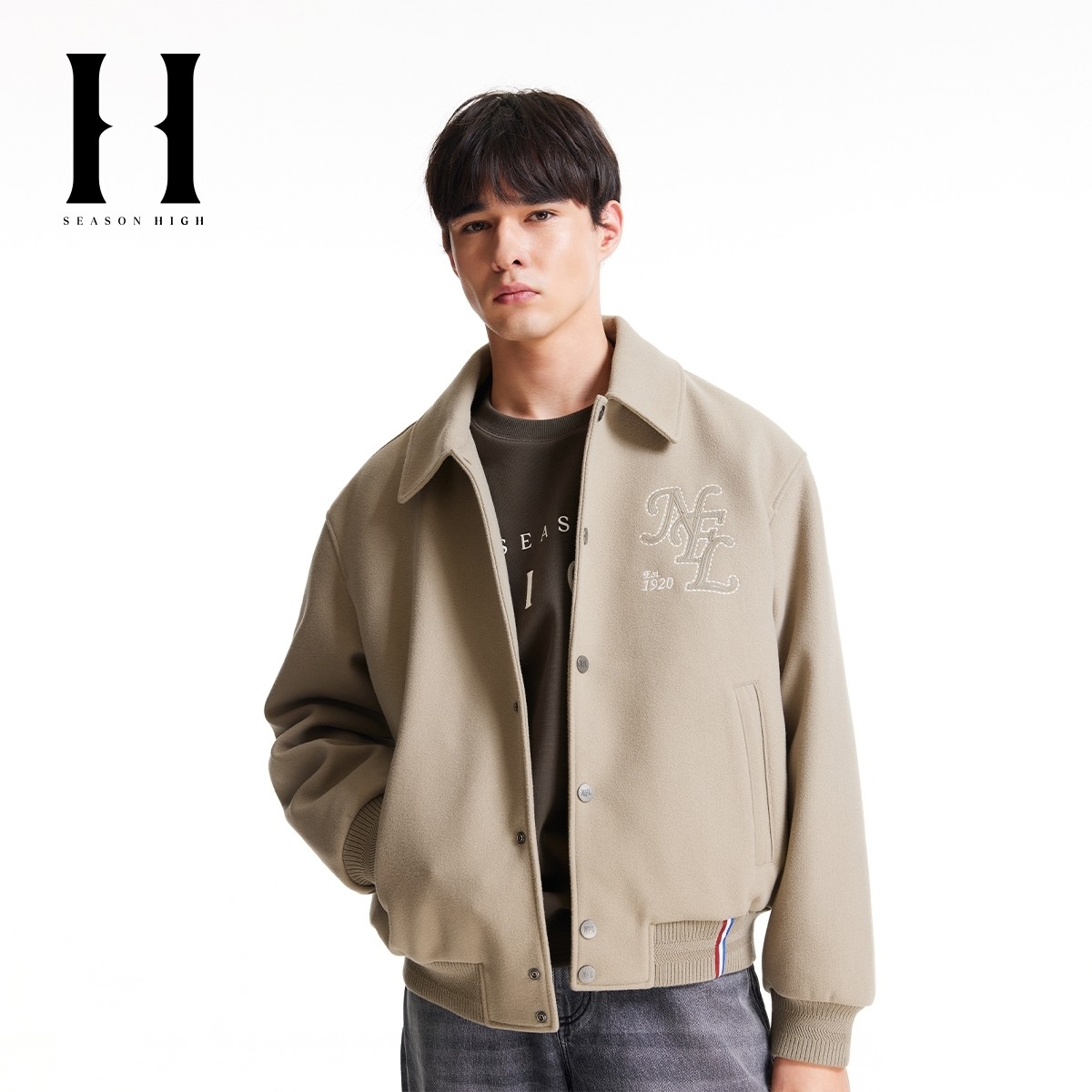 饰舒适时尚 宽松罗纹字母刺绣装 潮流夹克外套 HIGH秋冬新款 SEASON