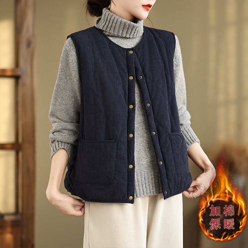 加绒加厚保暖坎肩背心工装 灯芯绒马甲男秋冬季 马夹外套 大码 新款