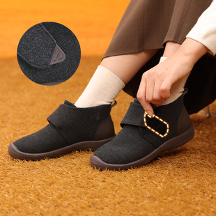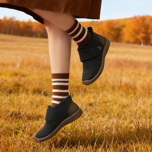 魔术贴高帮鞋 Pansy盼喜日本女鞋 超轻舒适不累脚软底保暖毛呢棉鞋