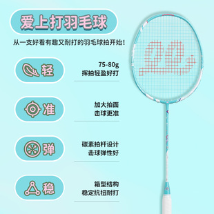 李宁羽毛球拍官方旗舰店正品 女生8男单拍 全碳素雷霆9超轻双拍套装