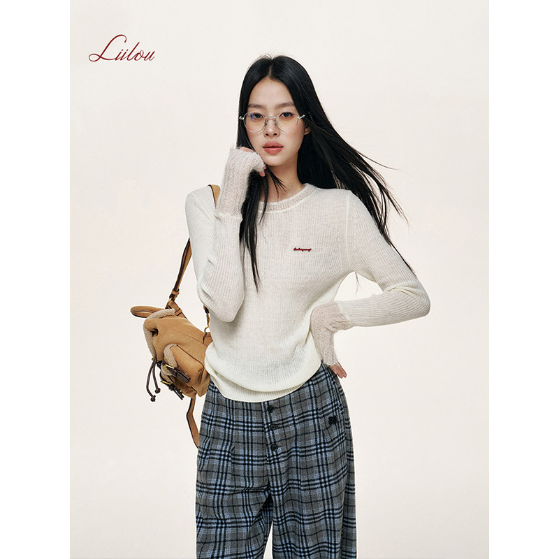 半高领木耳边针织上衣高级感毛衣 内搭2025新款 白色打底衫 女秋冬季