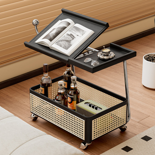 实木边几可移动收纳中古小推车客厅沙发储物置物架藤编简约餐车