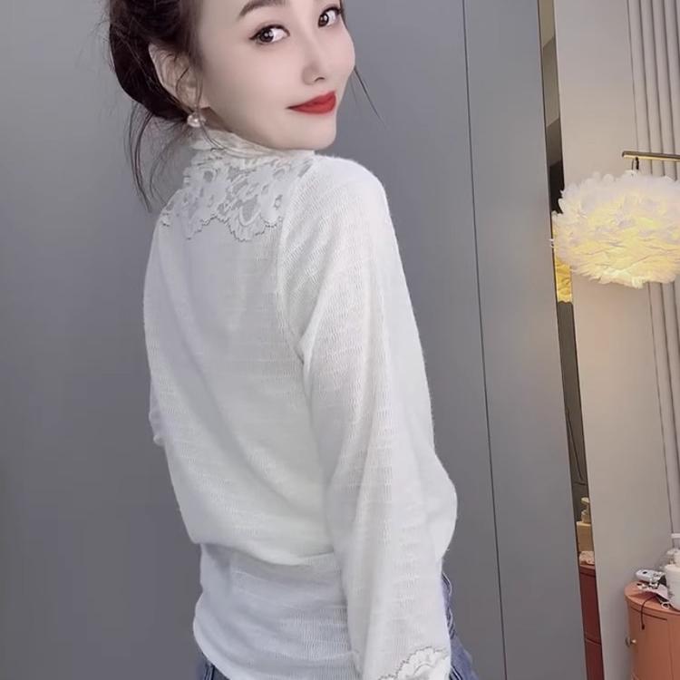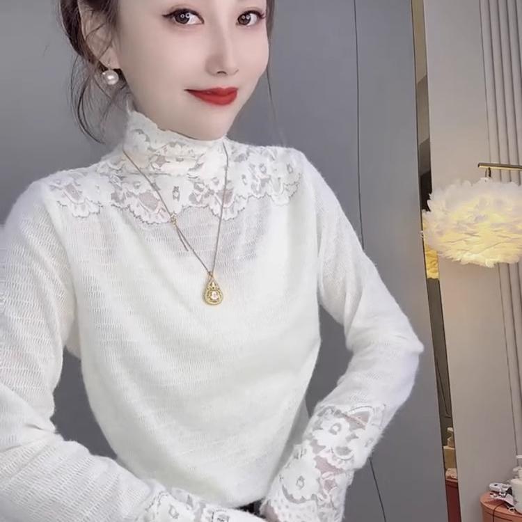 高领气质百搭长袖 新款 上衣潮 女2025冬季 小众洋气别致蕾丝漂亮小衫