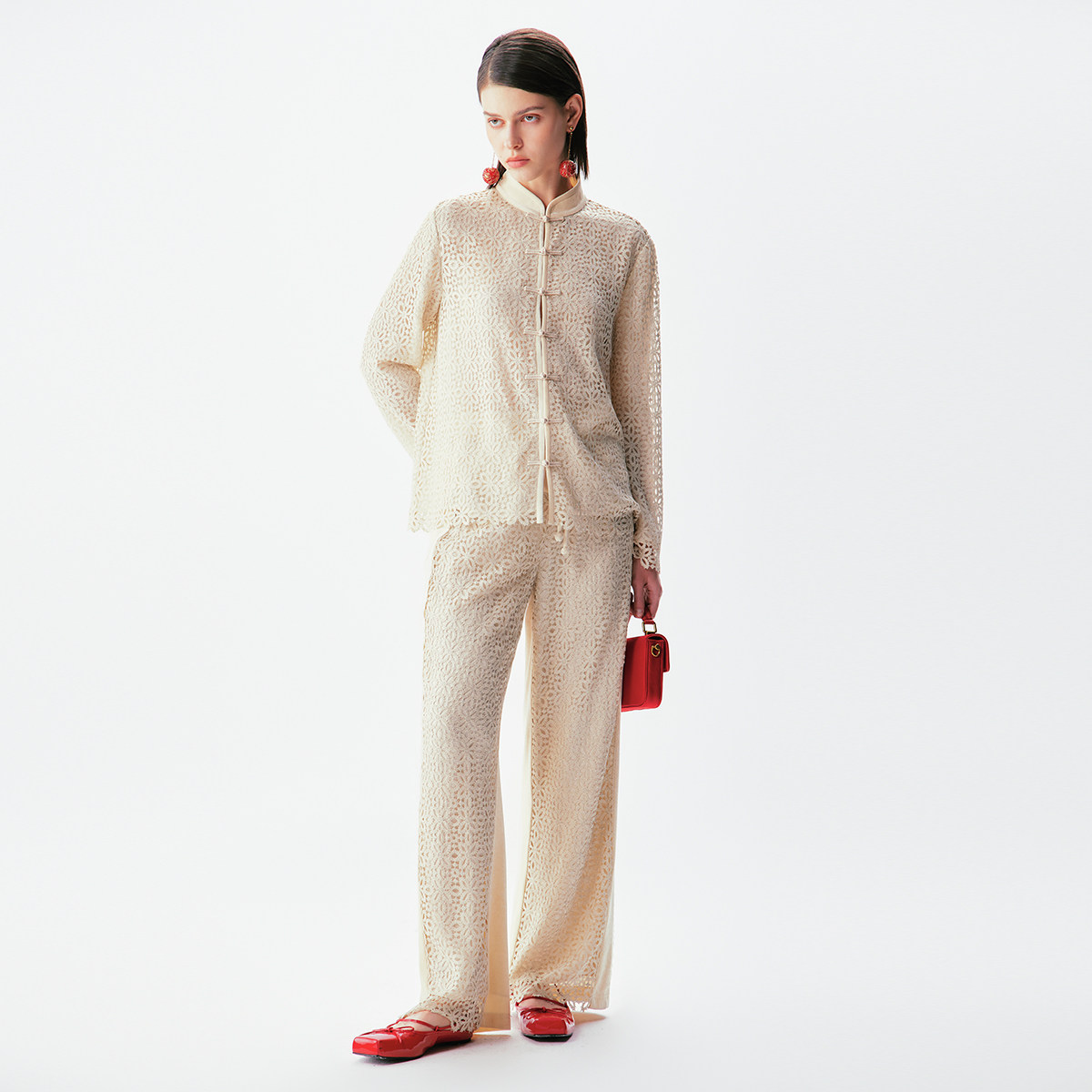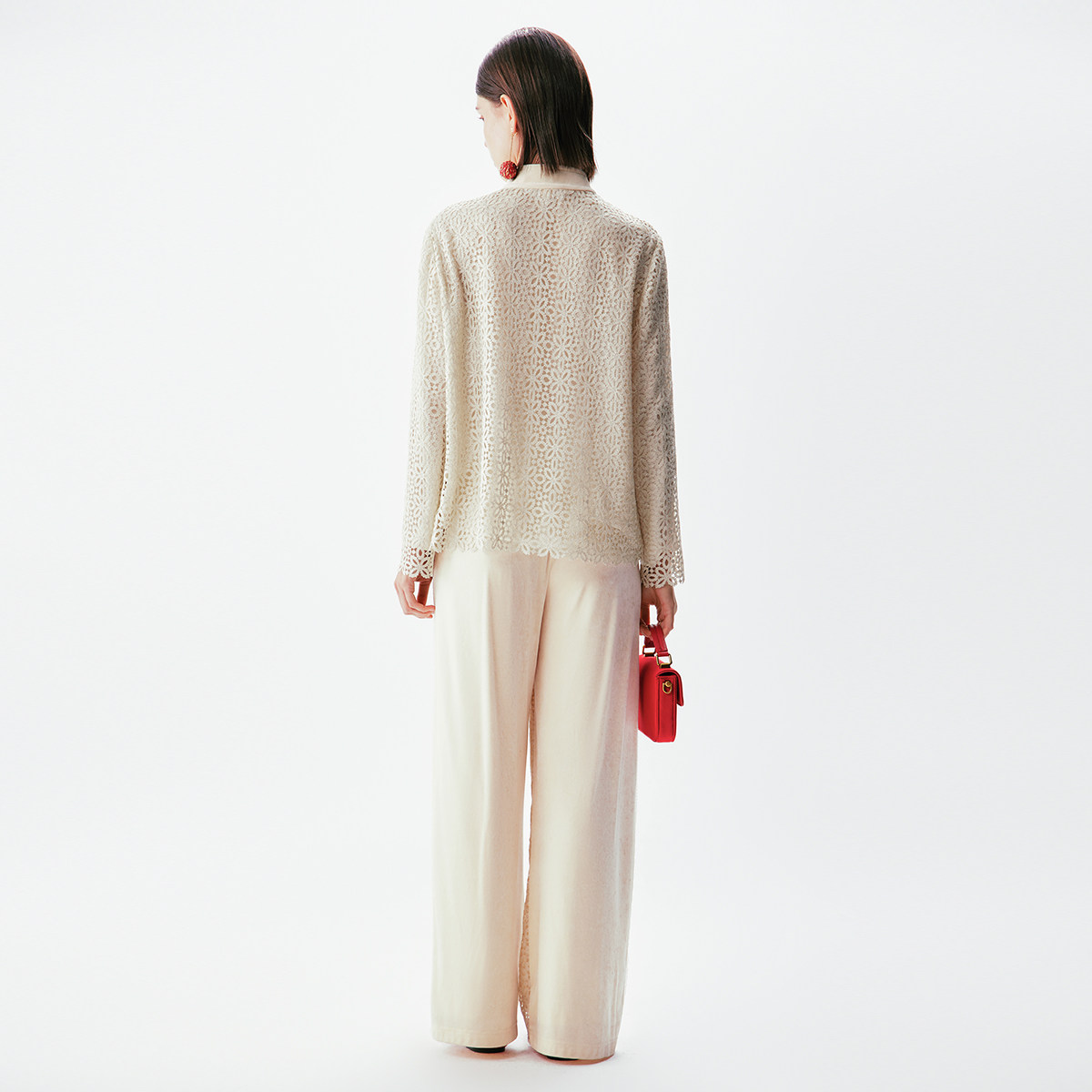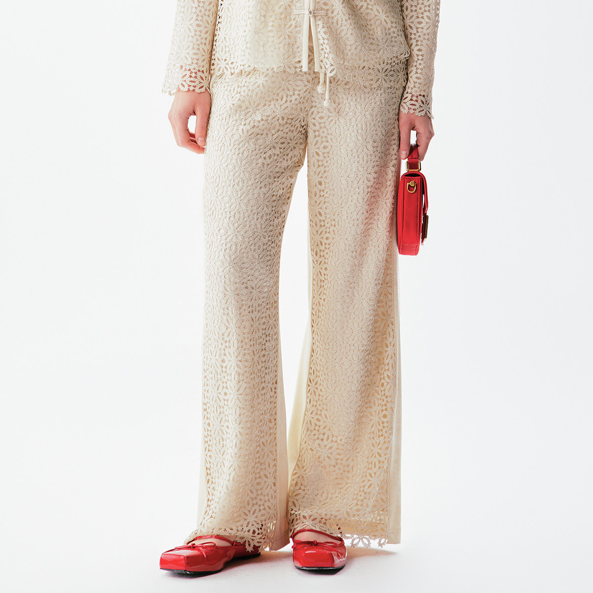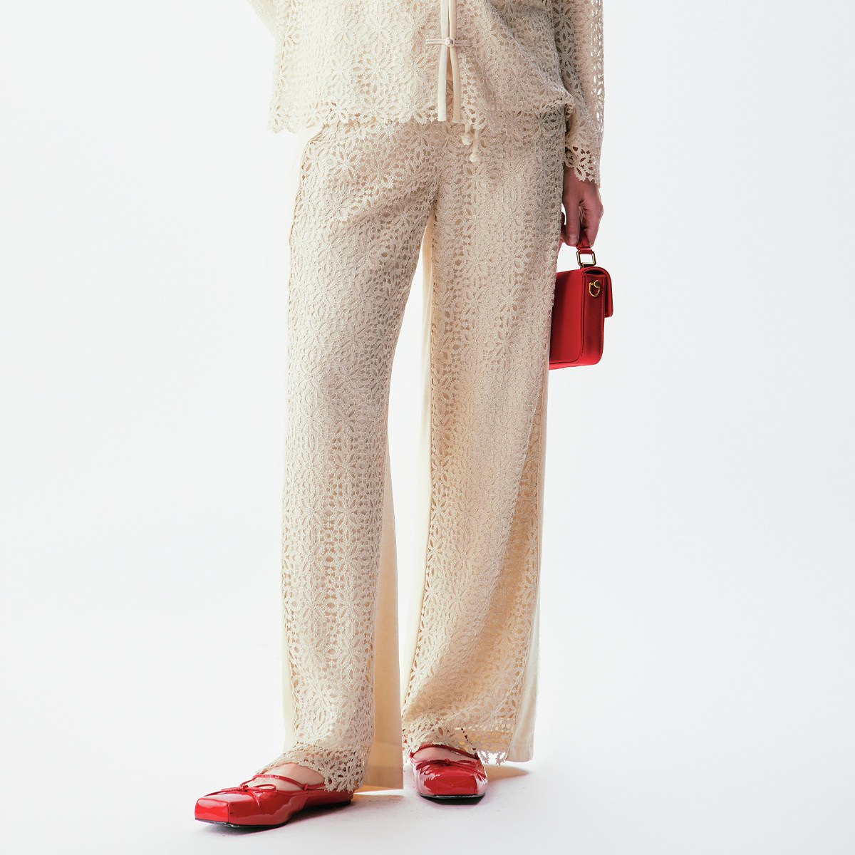 HUI卉弹力醋酸丝绒浮雕艺术复古镂空蕾丝松紧抽绳阔腿裤 2026新款