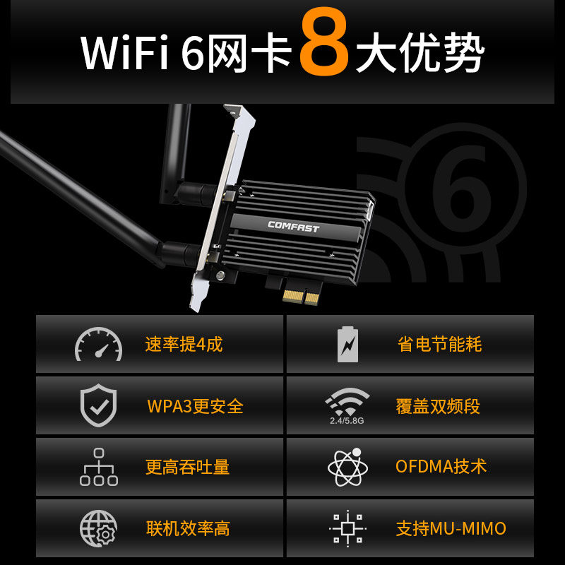 电脑WiFi接收器5G台式 WiFi6免驱动无线网卡USB台式 机上网迷你外置网络信号发射器笔记本家用随身 急速发货