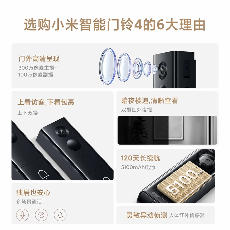 小米智能门铃4 可视门铃家用监控防盗门电子猫眼摄像 猫眼摄像头