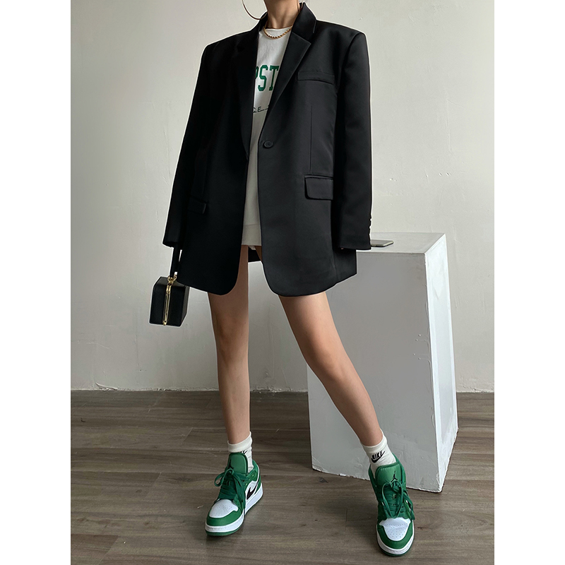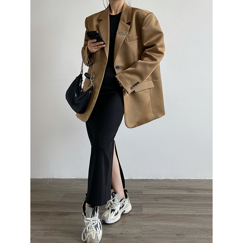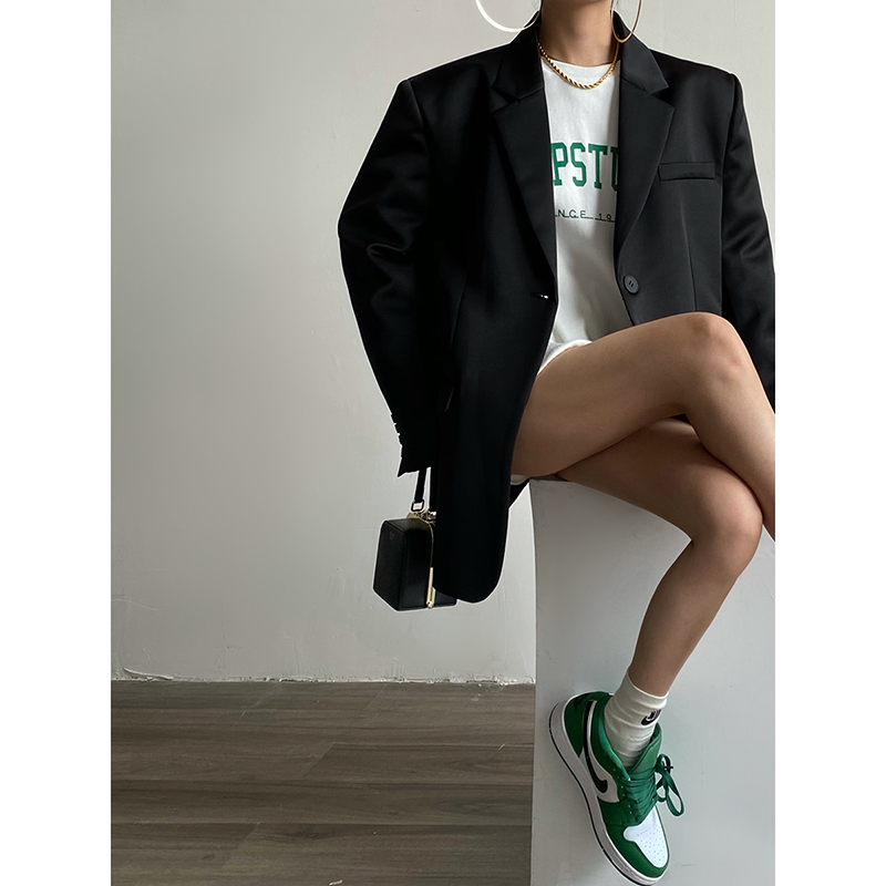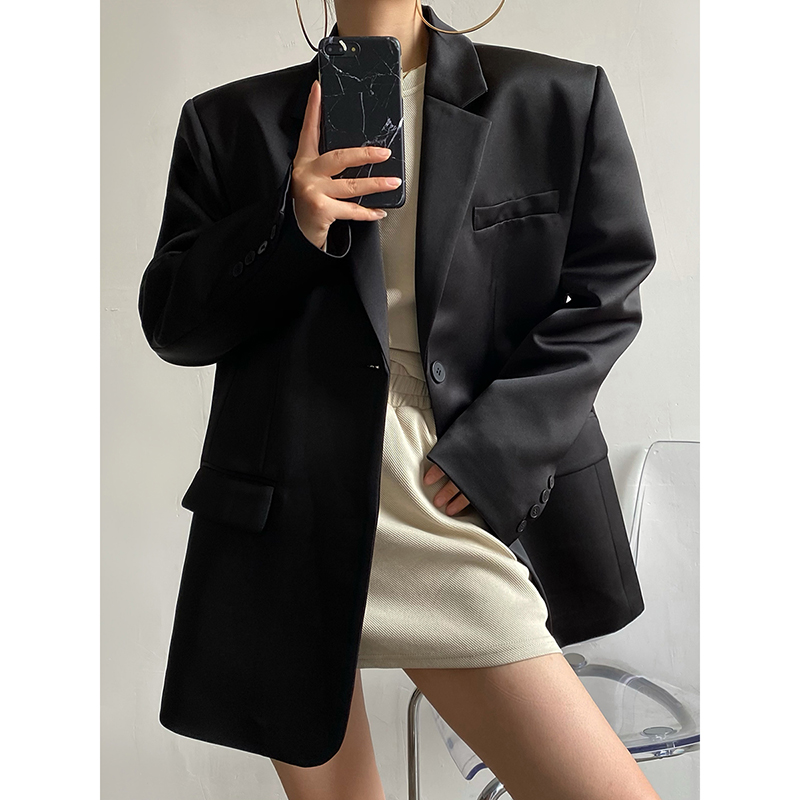 AcupStudio江右上缎面光泽感小西装 外套女2025春秋一粒扣垫肩西服