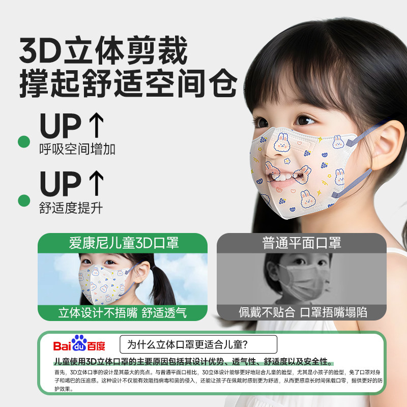儿童医用外科口罩8到12岁独立包装 3d立体3到6岁5到12岁一次性防护