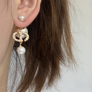 明星同款 金色珍珠耳钉女轻奢高级感气质大气耳环秋冬耳饰睡觉免摘