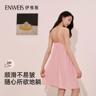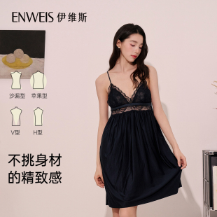 新款 伊维斯花语睡裙 吊带睡裙舒适蕾丝带胸垫冰丝家居服秋季