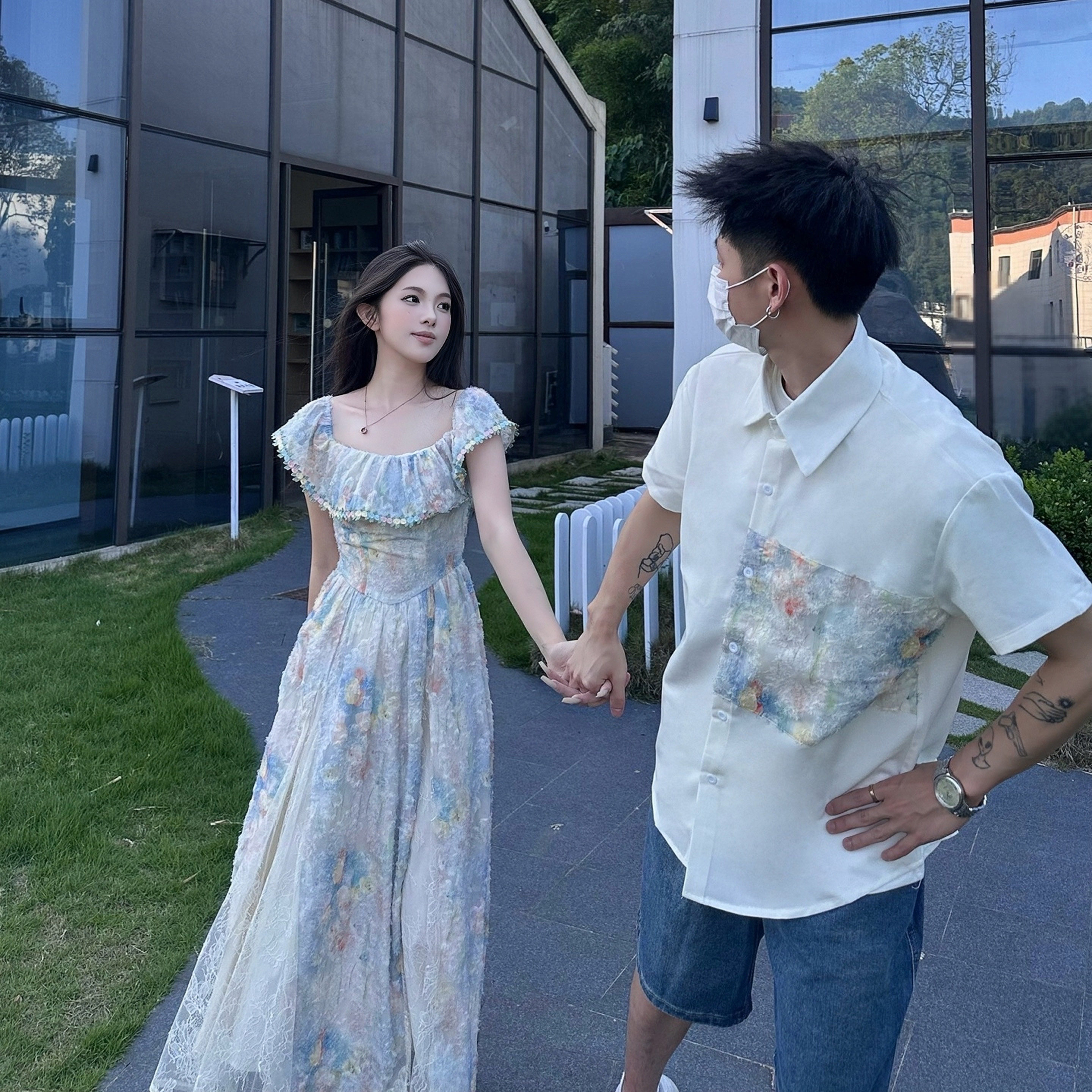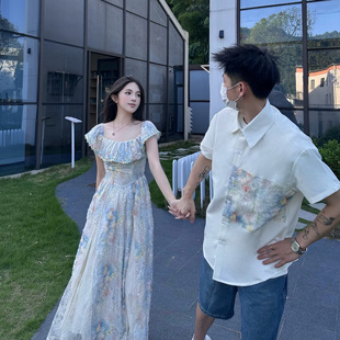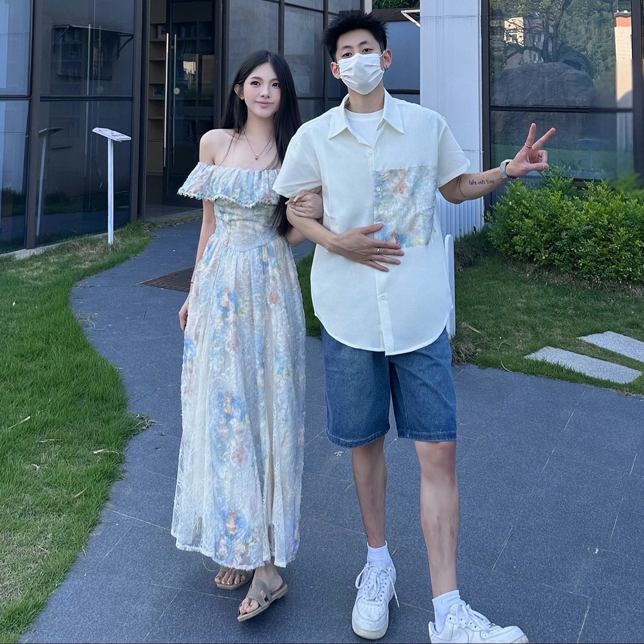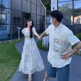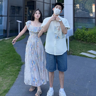 夏季 男女连衣裙法式 2025韩版 衬衫 一裙一衣潮 短袖 小众设计感情侣装