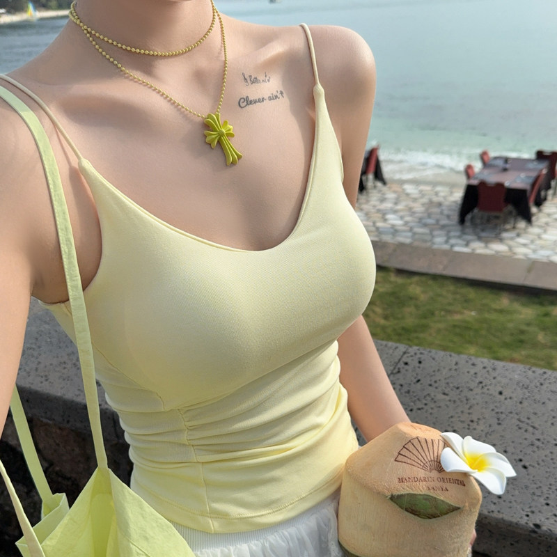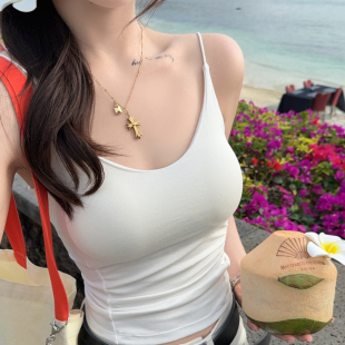 龙妹灰色带胸垫吊带背心女外穿2026新款 上衣内搭打底 春夏绝美无袖