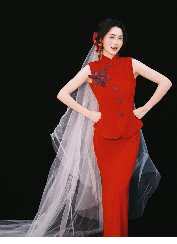 多丽琦新品 高端旗袍婚礼喜妈妈宴会活动优雅丝绒连衣裙 秋冬改良款