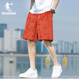男士 子休闲运动裤 夏季 外穿速干宽松五分裤 衩 冰丝薄款 乔丹迷彩短裤