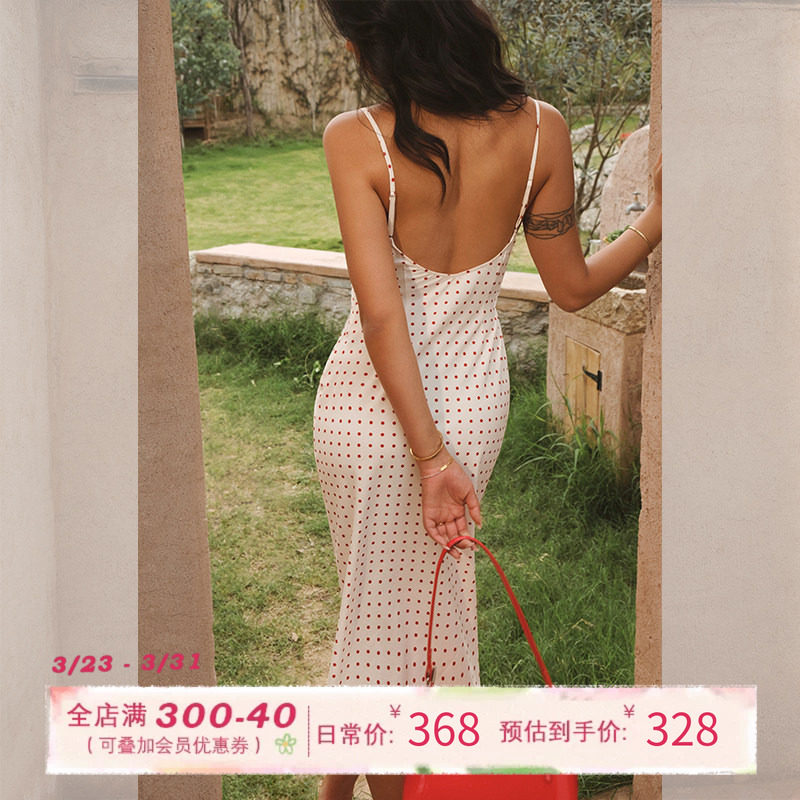 ITSNIKAR 吊带裙包臀长裙子 复古波点碎花连衣裙女春夏度假风修身