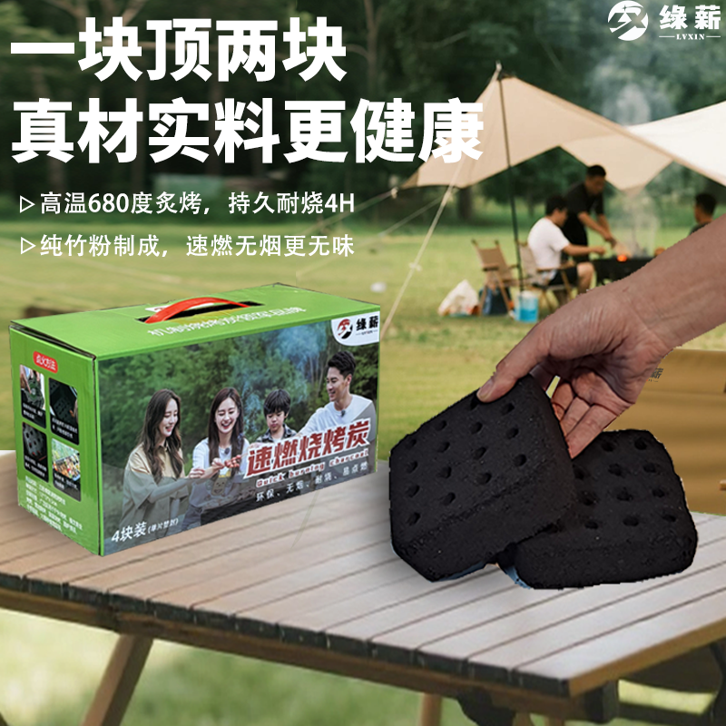 速燃炭烧烤碳无烟果木炭专用易燃竹炭家用方圆炭块围炉煮茶碳助燃