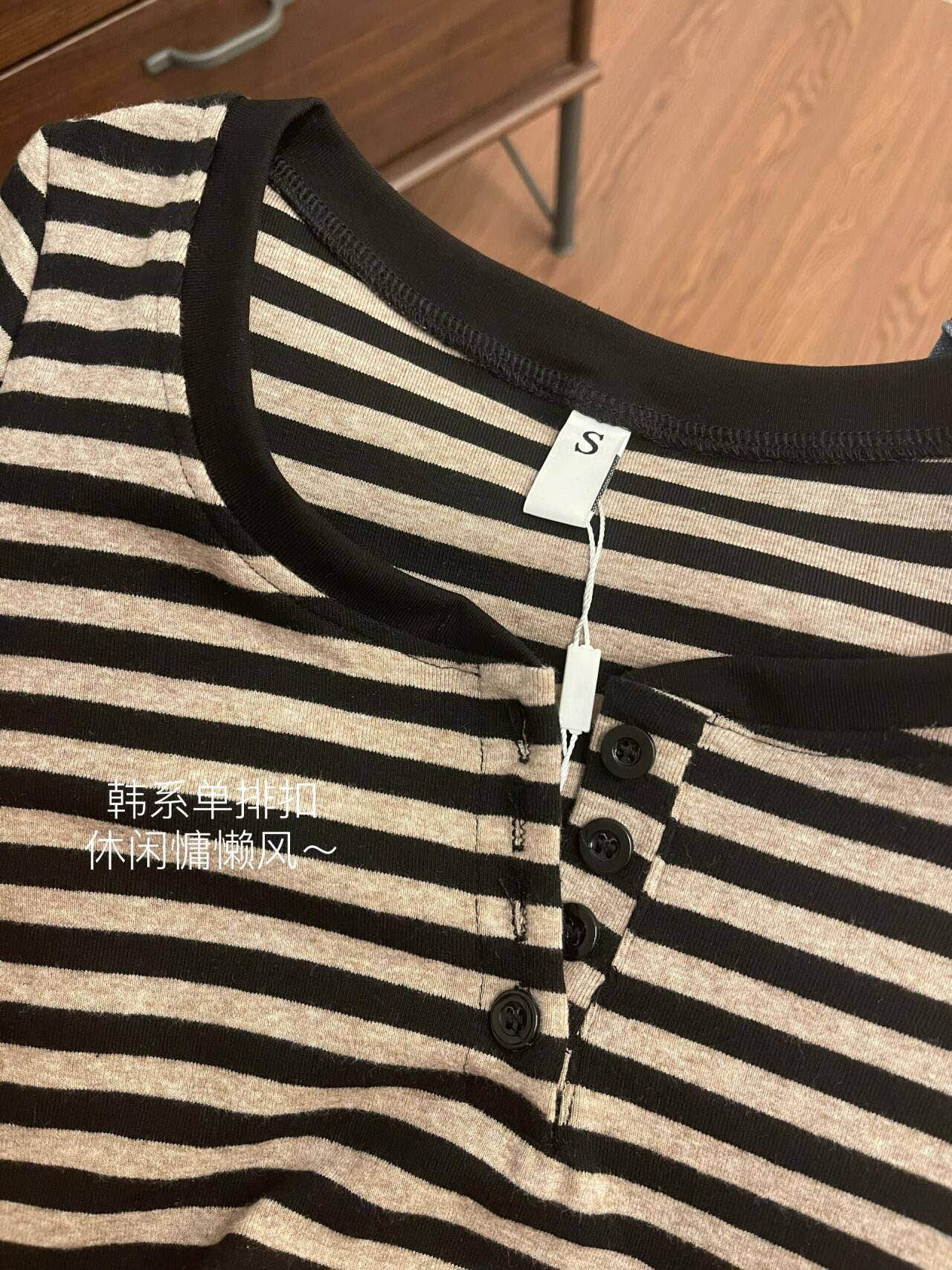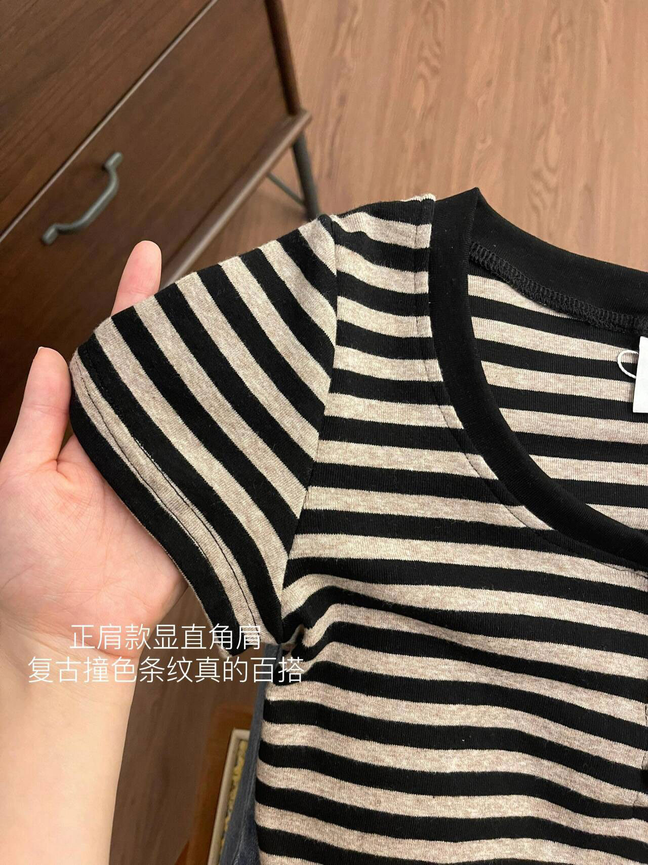 显瘦别致上衣 设计感小众修身 韩系复古撞色条纹正肩短袖 T恤女夏季