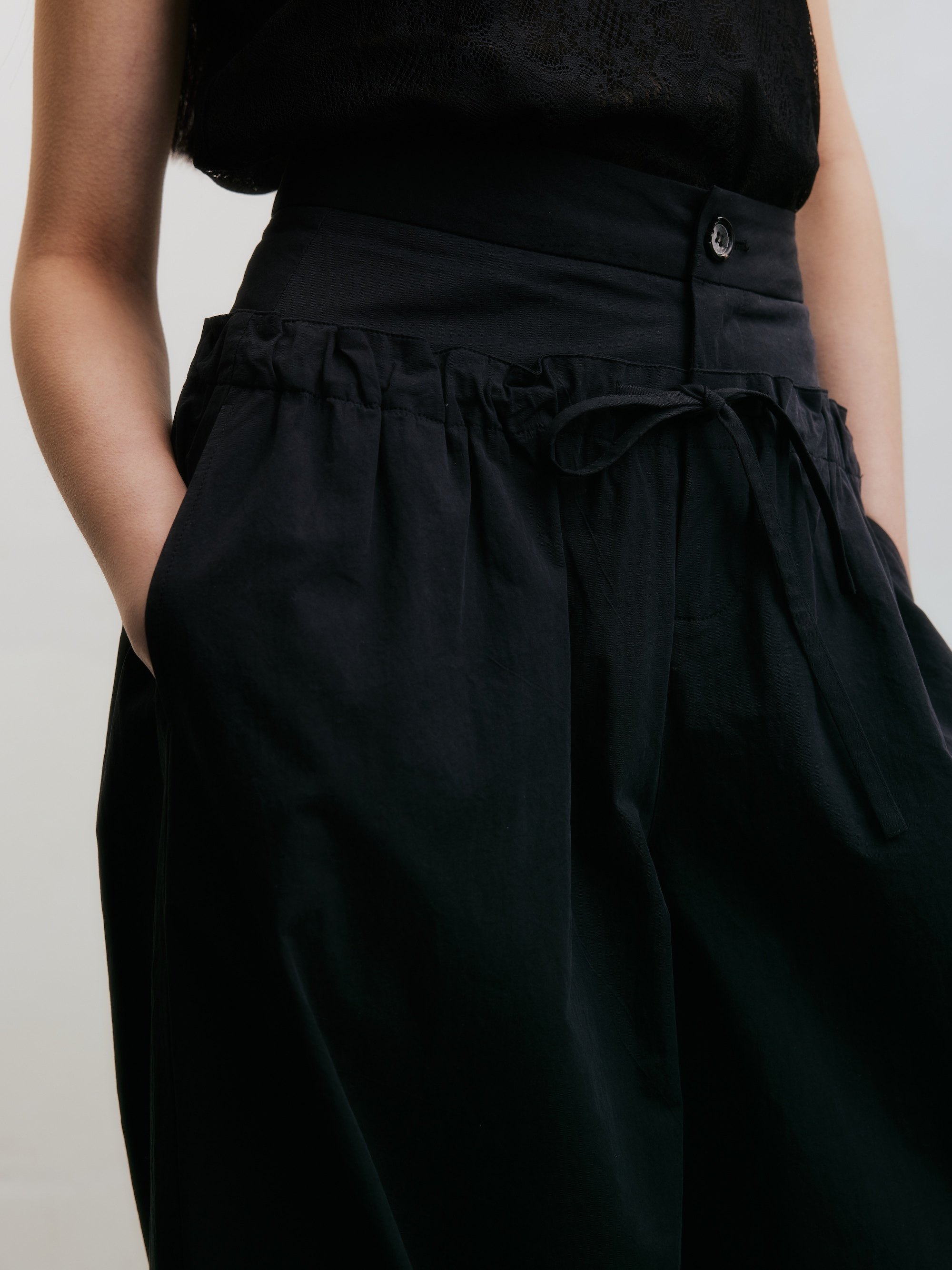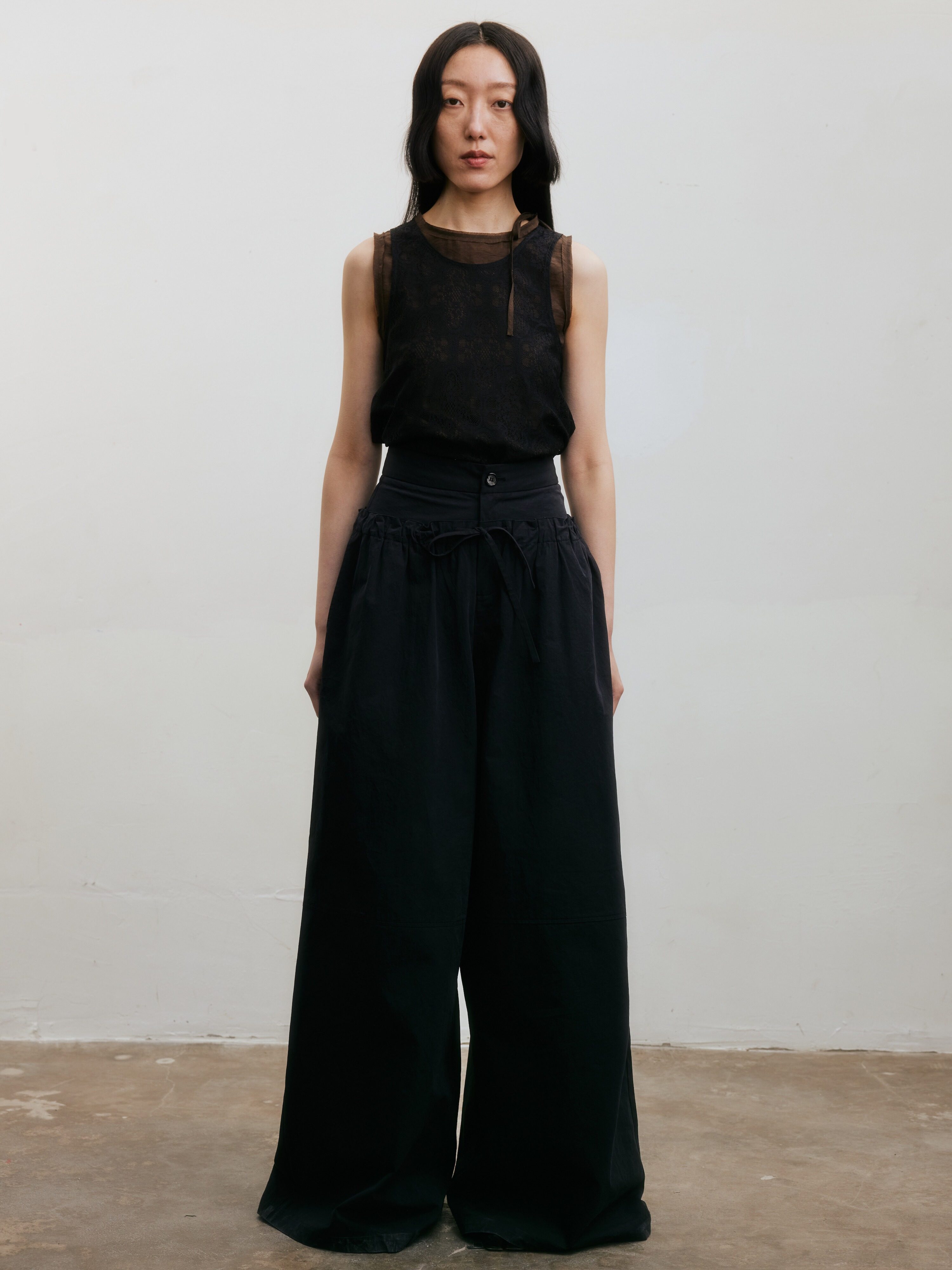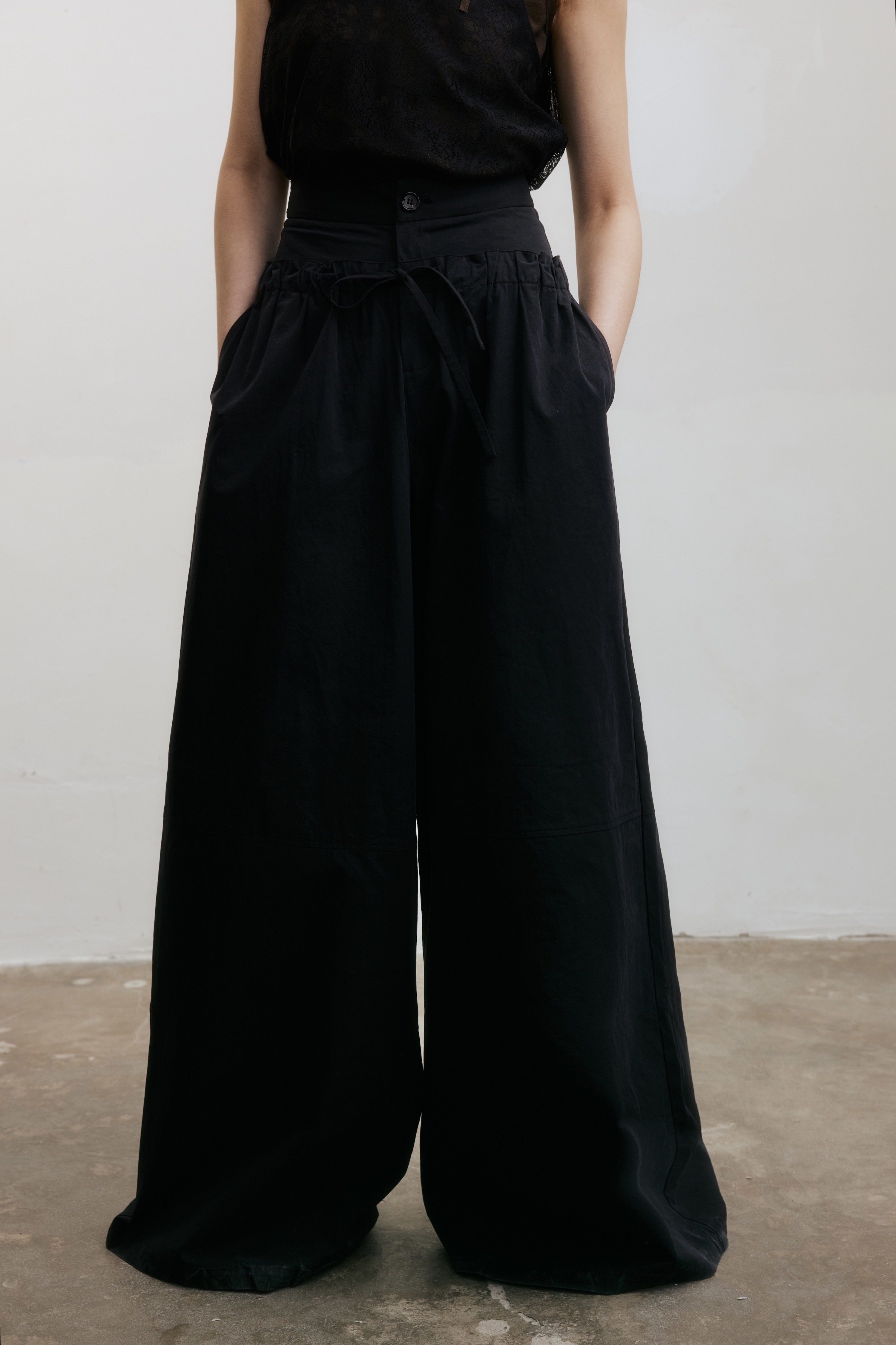 女休闲直筒拖地裤 VINZOO 双腰头原创拼接褶皱抽绳宽松阔腿裤