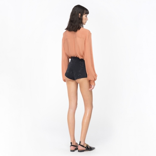 102964A1JZ 衬衫 PINKO女士通勤休闲荷叶边设计V领长袖 宽松薄款