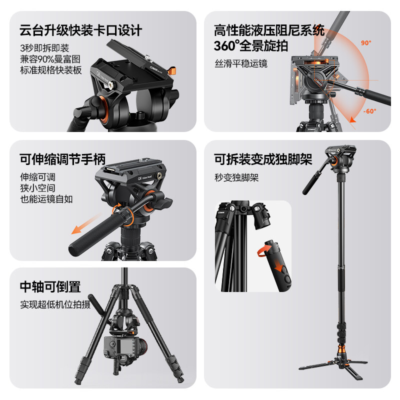 科漫相机三脚架专业摄像摄影支架液压云台运镜三角架单反便携拍摄支架拍视频微单KX3939PLUS 快拆 一秒快装