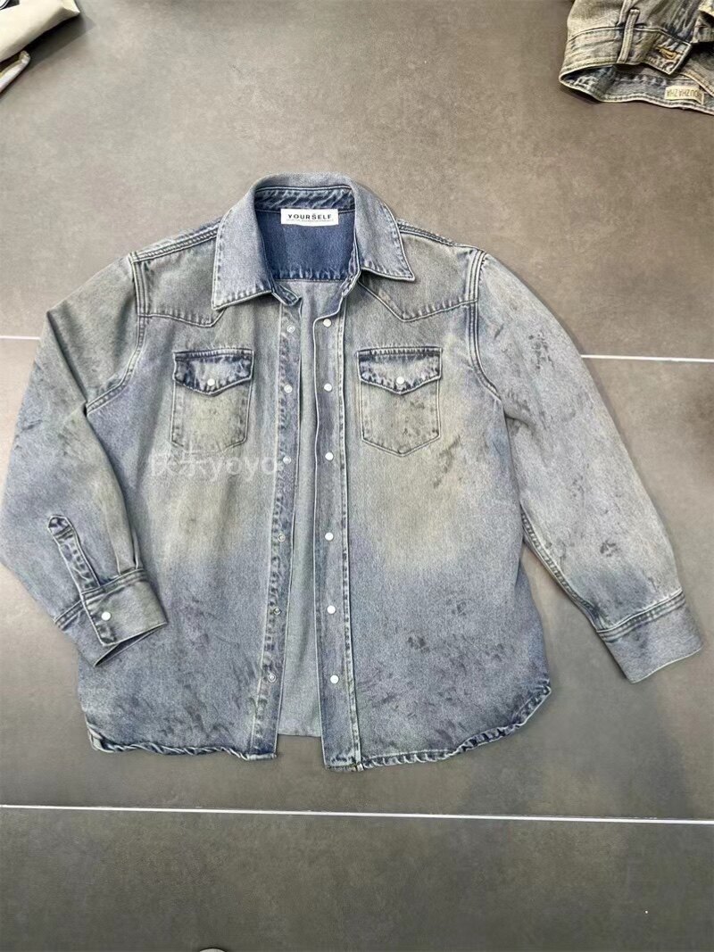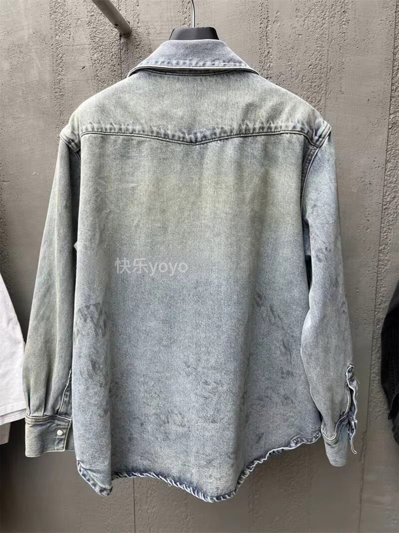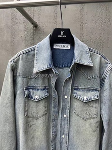 欧货bobo1972松弛废土风辣妹泥染做旧牛仔衬衫 不挑身材显瘦外套