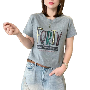休闲百搭体恤减龄显瘦圆领上衣潮 新款 正肩纯棉短袖 t恤女2025夏季