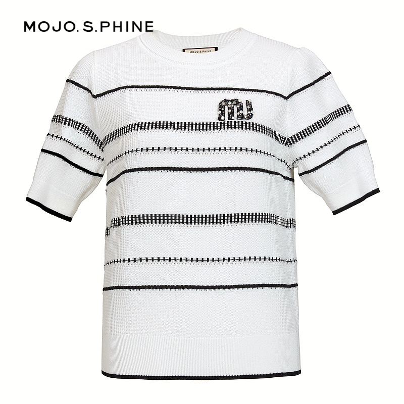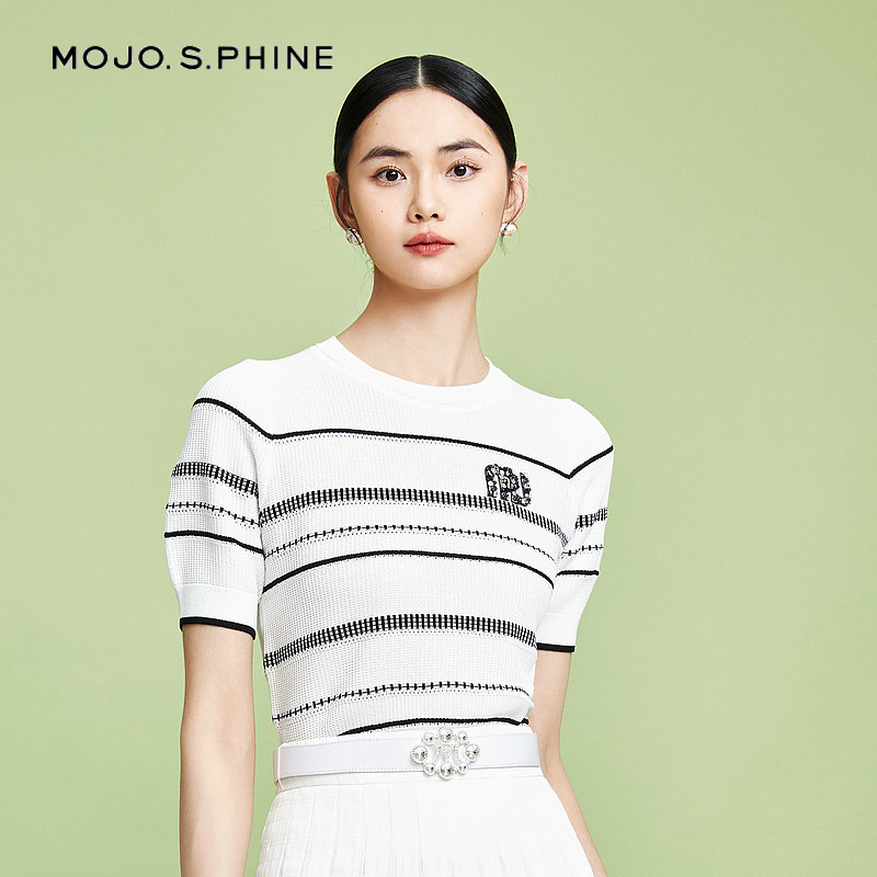 MOJO莫佐百搭条纹T恤针织套头衫 可降解冰丝尼龙面料上 2024年新款