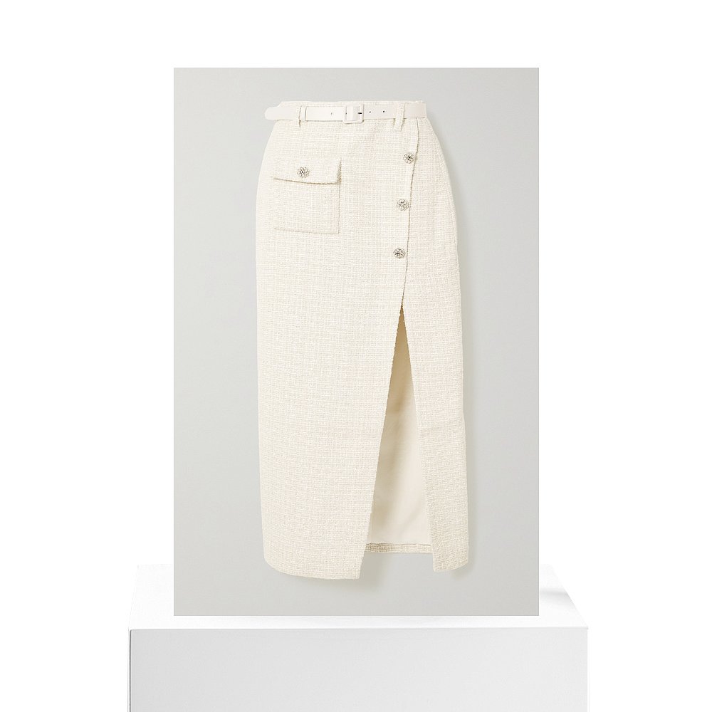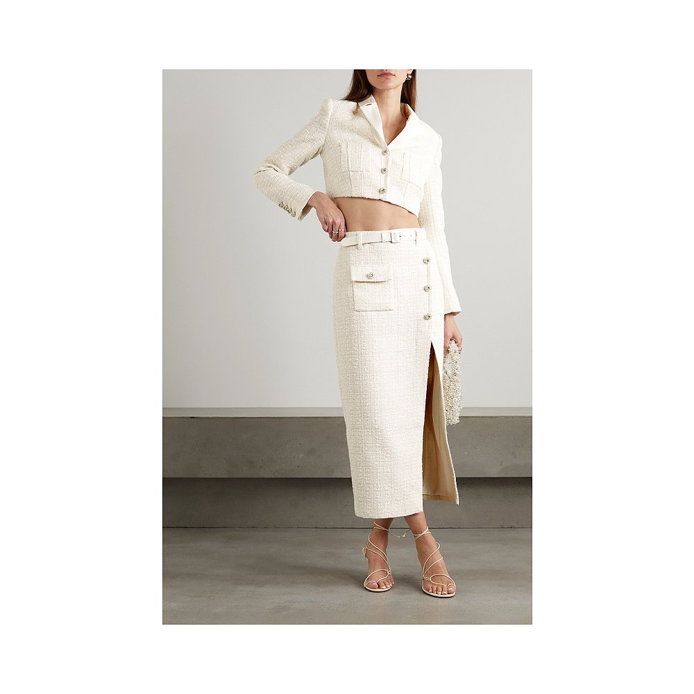 女士 Portrait 束带绸缎边金属感毛圈花呢中 香港直邮Self 1h可退