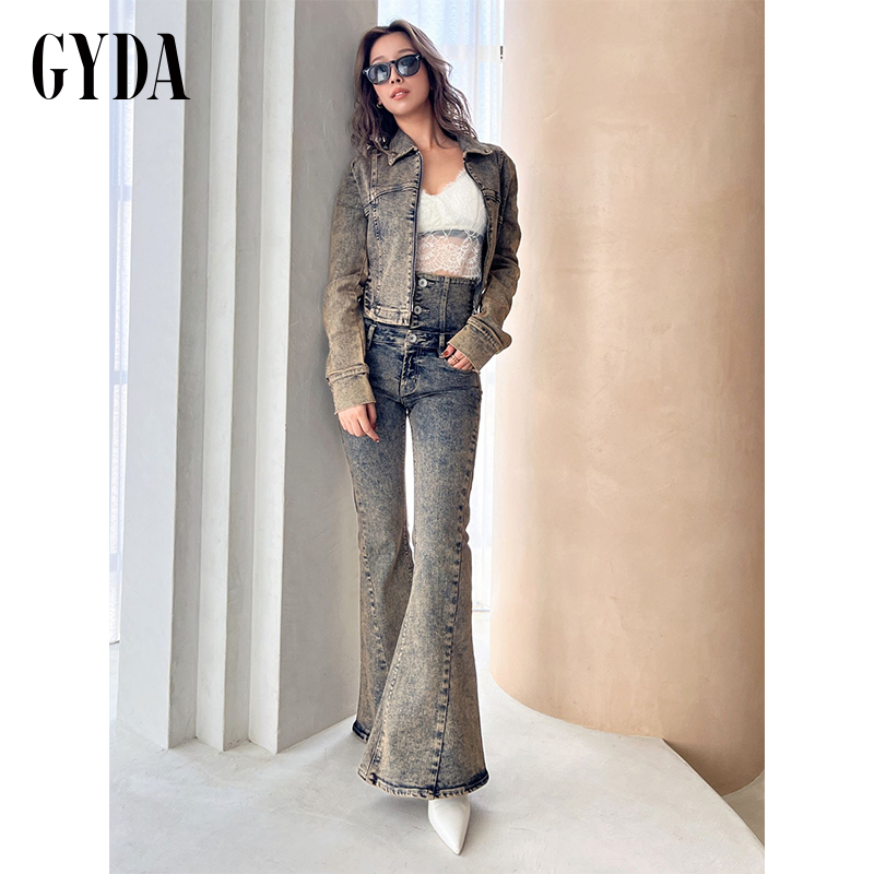 GYDA秋季 宽松休闲水洗做旧质感拉链女士牛仔外套0724501055 新款