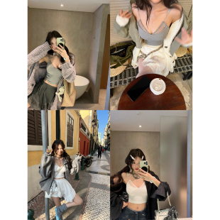 性感蕾丝拼接假两件V领吊带上衣女春季 V蕾秘语 新 Lin Xinlei