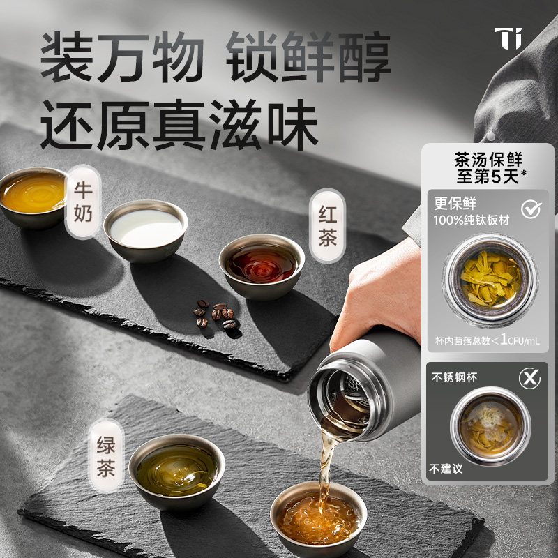 苏泊尔钛杯子纯钛保温杯男士 高端大容量车载户外高档商务泡茶送礼