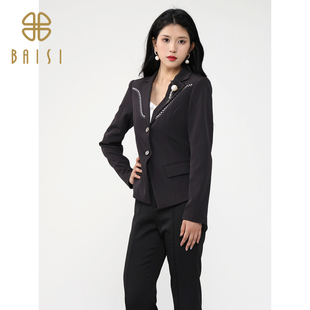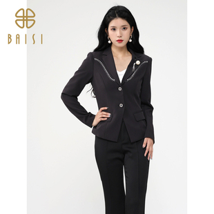西装 百丝翻领修身 职场商务风设计感长袖 新品 女 收腰外套2024冬季